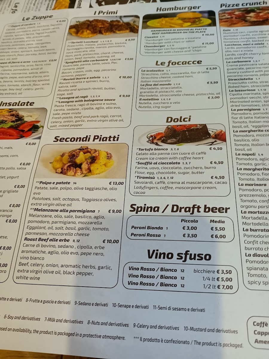 - Antipasti: Start with the delightful Antipastino Agile, featuring a selection of Garfagnana cheeses paired with sweet jams for just €10.00, or dive into the Tagliere, a board of cured meats and cheeses served with warm focaccia.